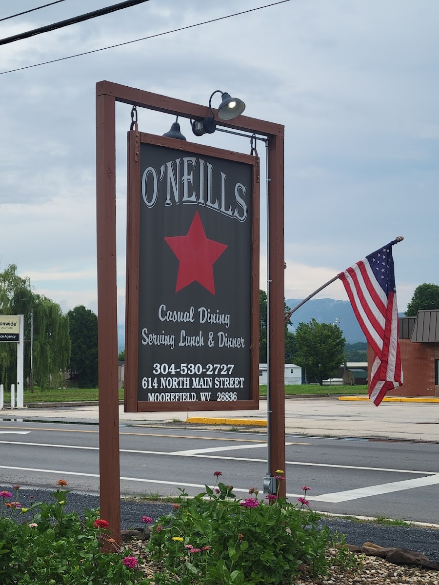 Being in Moorefield on business the weekend of Oct 24-27, I asked several locals for a good location for dinner and independently each said, "go to O'Neill's!" On Saturday night, I went. They were SO RIGHT. The place was packed (as I learned it always is). There was a wait, but as I was alone, there was a seat at the bar right away. I was served by the owner, Mike O'Neill himself. He was a delight and the food and drink was equally wonderful. They had an unusual side dish in a half an acorn squash with a brown sugar glaze. AMAZING. As was the salmon and baked potato. But Mike - a delightful man, engaged me in conversation and introduced me to the gent at the barstool near me. What a friendly place! Prices were insanely reasonable, too. I will ensure I get back to Moorfield soon - just to eat at O'Neill's.
