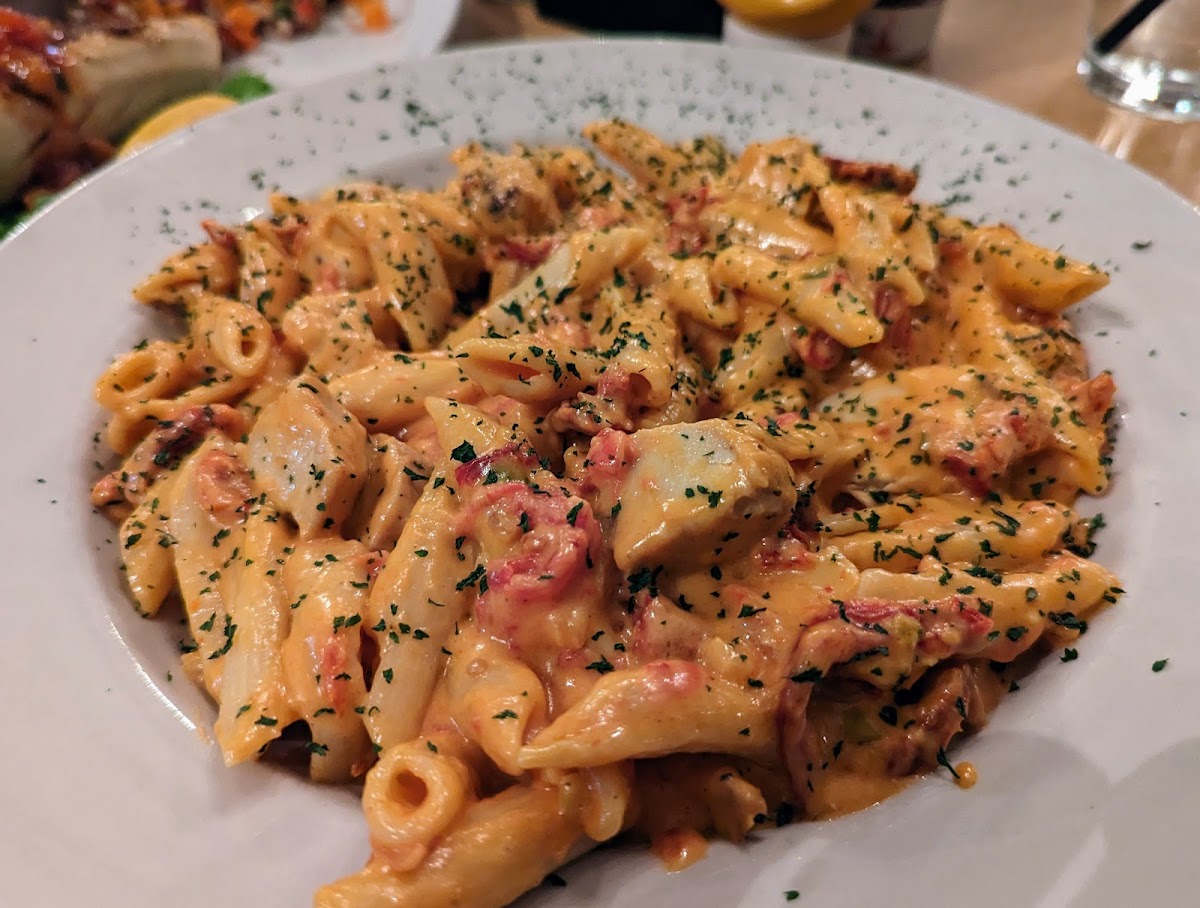 Tired, hungry, and 250 miles from home, we picked a place to eat at random. They were busy on a Wednesday evening so we thought that was a good sign. I ordered the chicken Santa Fe and my wife got fish. The chicken is a pasta dish in a mild jalapeno sauce. It was good but the sauce just tastes of cheese. I couldn't discern any jalapeno flavor at all. There's not much chicken in the Chicken Santa Fe and it needed a little salt but it was a large portion and the sun dried tomatoes were very flavoring The fish dish was a special. It was seasoned well but a little over cooked. She asked for couscous and beets on the side. Both sides were delicious. The service was fast and friendly. Pop-country music playing in the dining area was too loud to comfortably converse, though.